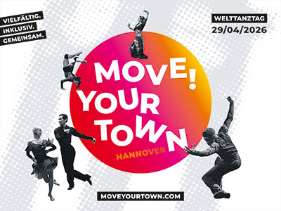 Presse Pressekonferenz für MOVE YOUR TOWN 2026: Freitag, 17. April 2026, 11 Uhr, Kesselhaus (Faust-Gelände), Hannover> nähere Infos folgen Download: Pressemitteilung als PDF Pressemitteilung als RTF-Datei Programmübersicht als PDF Programmübersicht als RTF-Datei Logo (bunt & schwarz) Motiv 2026 (verschiedene Formate) Fotos (bitte Fotograf*in mit angeben) Gesamtpaket (Texte, Logo, Motiv 2026, Fotos)