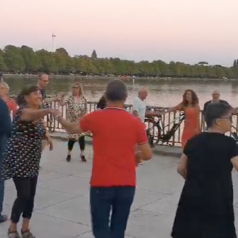 Erlebe mit der Gruppe „Rueda Libre“ die Dynamik der „Rueda“ – ein synchroner Salsa-Kreistanz voller Energie und Spaß, bei dem die Partner in rasantem Tempo wechseln und für echte Gemeinschaftsstimmung sorgen.